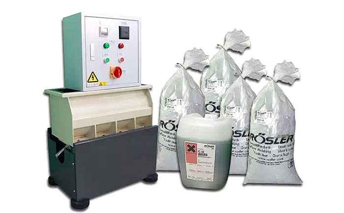 通過將產(chǎn)品放進(jìn)彩色石子和藥水混合的特殊液體中